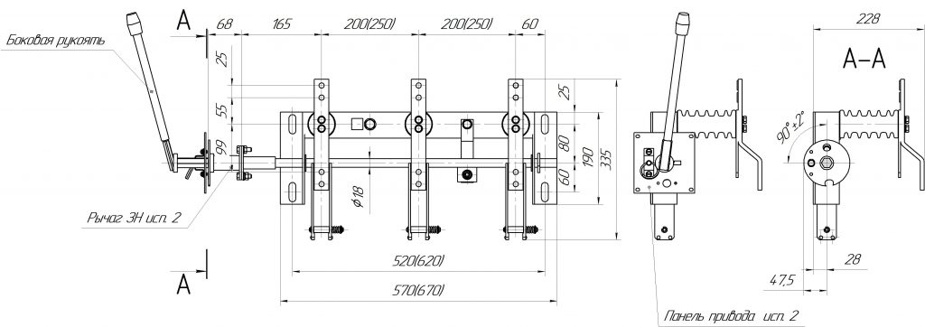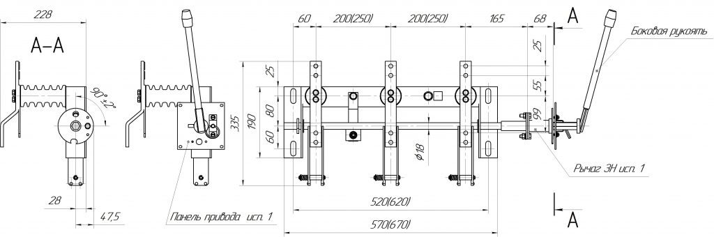 Усилие, прикладываемое к рукоятке привода, при оперировании разъединителем и заземлителем, Н, не более 250 Н
