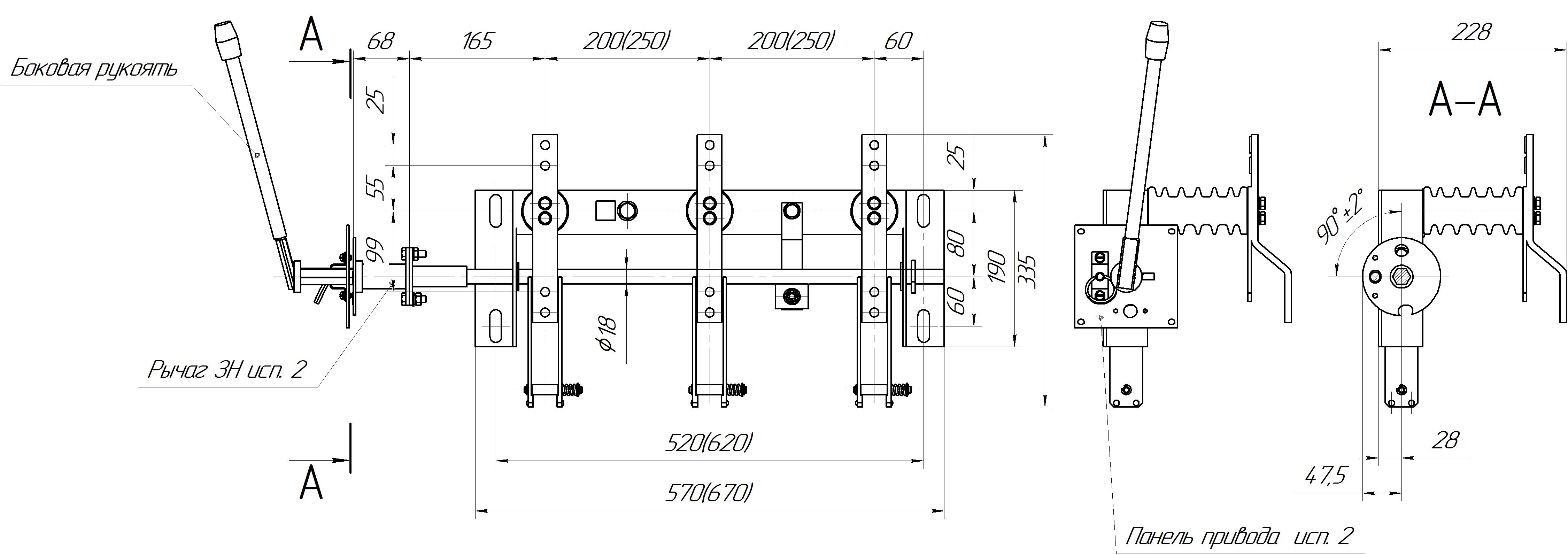 Габаритные и установочные размеры разъединителя ЗР(Лпр)-10/400 УХЛ2.